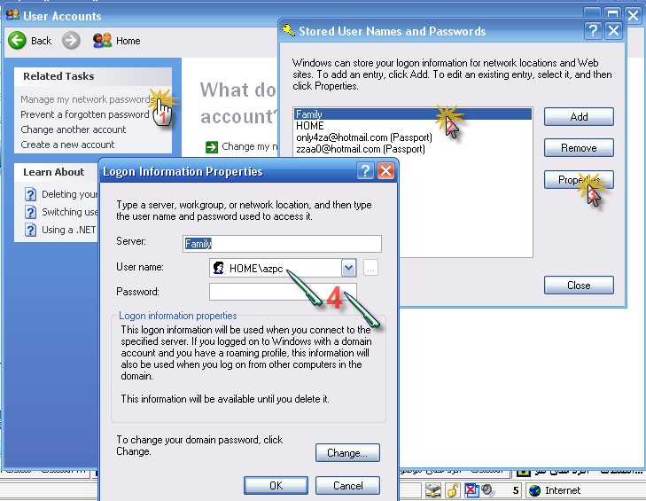 من Control Panel >>> User Account
