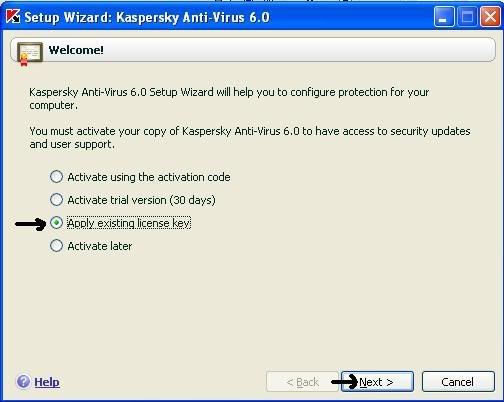 وفي البداية .. أضغط على الأختيار الثالث Apply existing license key وبعدين Next .