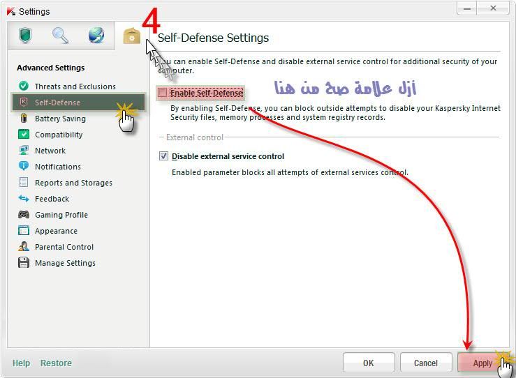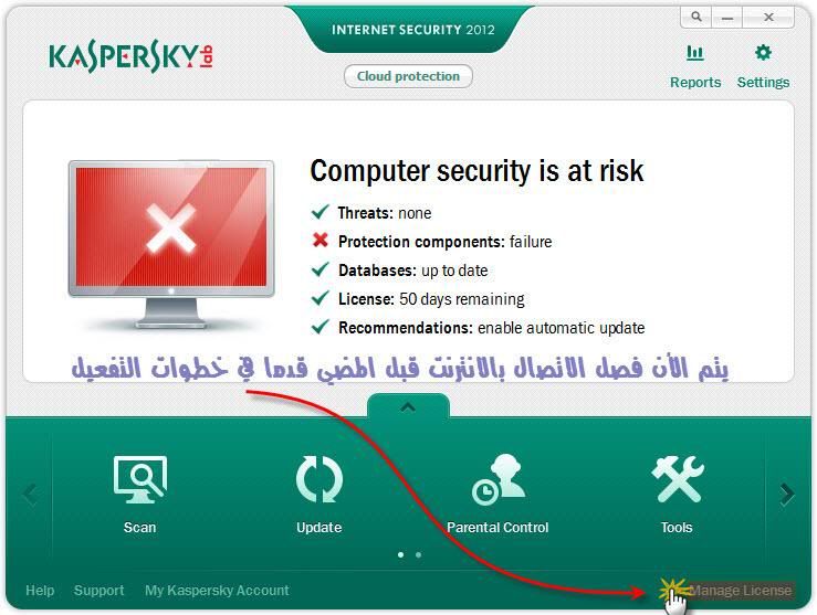 شرح التفعيل بباتش إعادة المدة التجريبيةنستهل التفعيل ، بوقف حماية البرنامجكليك يمين على الأيكونة بجوار الساعة وأكمل كما بالصورةستظهر الرسالة التالية للاستفسار عن مدة وقف حماية البرنامجأنصح باختيار لحين عمل إعادة تشغيل للجهاز ، كما بالصورةنتجه بعد ذلك للإعدادات ونوقف الخدمات الموضحة بالخطوات 3 و 4نغلق البرنامج تماما بجوار الساعة..ونبدأ في تثبيت الباتشبذلك تم تفعيل النسخة لديك بمدة تجريبية جديدةوتكرر نفس الخطوات السابقة عند انتهاء المدة