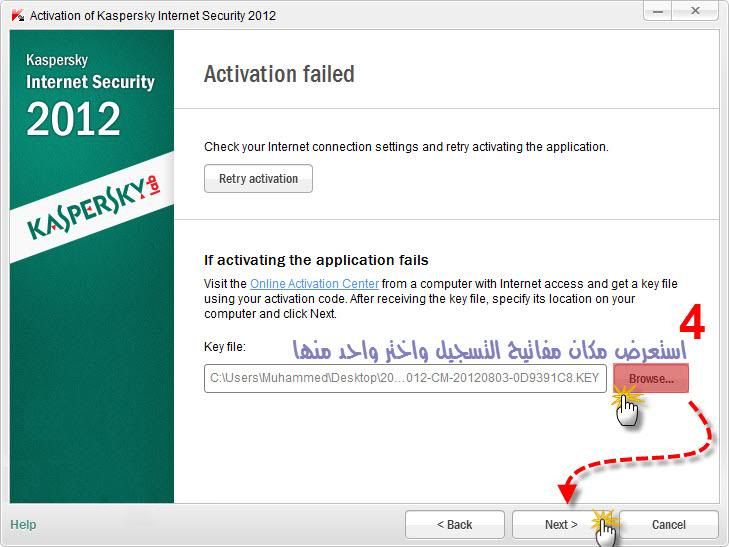 بعد التحميل ، إختر ملف التسجيل المقابل لنسخة 2012 التي حملتهاسواء كانت أنتي فايرس أو انترنت سكيوريتي أو بيور