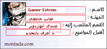 لا هي مجرد بطاقه ظريفه الشكل بسيطة المظمون , يكتب فيها العضو معلومات بسيطه جدا عن نفسه واذا احتجنا اي شيء دق على الملف الشخصي وخلاص صح![]()