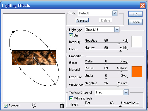 5-اذهب الى Filter>Render>lighting Effect وطبق التالي: