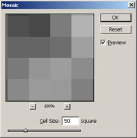 5-اذهب الى Filter> Pixelate> Mosaic واجعل حجم المربعات 50