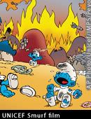 According to E!, UNICEF has released a PSA featuring the Smurfs, being bombed by an unknown force, with the familiat Smurfs either dead or disappeared. Only Baby Smurf escapes alive, wailing.