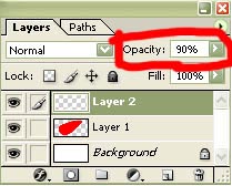 9- اجعل الـ Opacity لطبقة اللمعة بقيمة 90 كما هو واضح في الشكل ثم الغي التحديد..