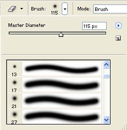 لذلك قم باختيار المساحة ( إنتشارية وليست حادة) واجعل حجمها 115 بيكسل كما في الشكل: