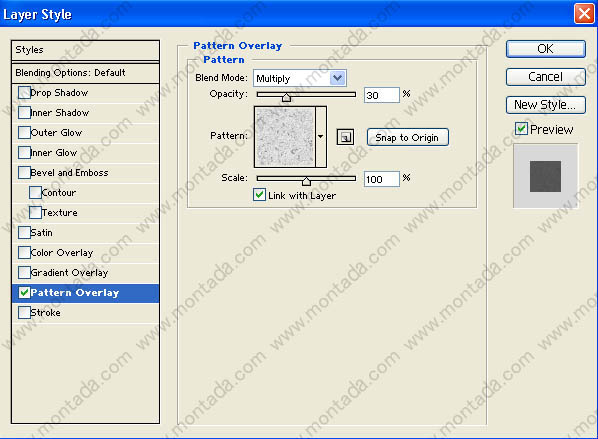 اذهب إلى Layer < Layer Style < Pattern Overlay