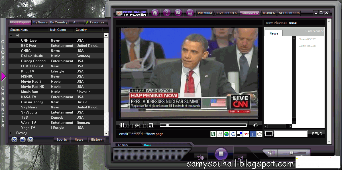 مشاهدة القنوات الفضائية المشفرة تركيب ستلايت على على كمبيوتر فتح القنوات المشفرة على حاسوب مشاهدة كأس العالم اون لاين مع Free Online TV Player قد لايكون البرنامج كما وصفناه او الشركة التي وصفته لكن مع هذا البرنامج يمكنك مشاهدة اكثر من 1500 محطة فضائية من خلال شبكة الأنترنت نعم صدق او لاتصدق يمكنك مشاهدة اغلب المحطات الفضائية العربية الامريكية الايطالية الفرنسية من خلال برنامج Free Online TV Player وايضا يمكنك الاستماع الى اكثر من 2000 محطة راديو من خلال البرنامج كل ماتريده يمكنك مشاهدته من خلال برنامج Free Online TV Player محطات فضائيات الكارتون التي تعرض احدث افلام الكارتون لأطفال وايضا محطات افلام الاجنبية محطات الاخبار وكل ماتريده يمكنك مشاهدته من خلال برنامج Free Online TV Player مع هذا البرنامج انت لست بحاجة الى تركيب جهاز رسيفير او لاقط لأستقبال المحطات الفضائية بمجرد تركيبك للبرنامج سوف تتمكن من مشاهدة اكثر من 1500 محطة فضائية من على الشبكة العنكبوتية الأنترنت يتميز البرنامج بواجهة بسيطة ورائعة والكثير من مميزات متوافق مع انظمة ويندوز Windows All والبرنامج مجاني بالكامل يمكنك تحميله ومشاهدة المحطات الفضائية الارضية والعالمية لكل دول العالم
