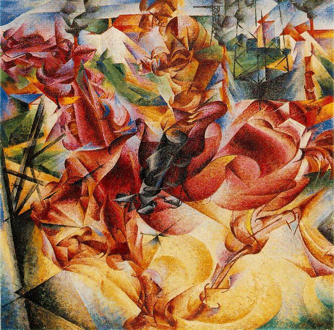 وحاول الفنان التعبير عنه بالحركة والضوء، فكل الأشياء تتحرك وتجري وتتغير بسرعة...