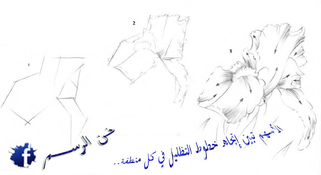 مراحل رسم وردة جميلة..مع تحديد التظليل ..
