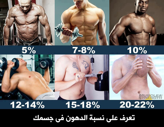 أولا : من أجل التضخيم السليم للعضلات لابد لنا من معرفة نسبة الدهون الموجودة حتي نعمل علي التخلص منها أولا و بعد ذالك يمكنك التضخيم بأمان , و لمعرفة نسبة الدهون إذهب الي الربط التالي :-ما هي نسبة الدهون التي يفضل بدء التضخيم من عندها ؟النسبة التي يفضل البدء من عندة هي 8% إلي 10% , مثال علي الصورة لجسم كان 15الي 20 % و أصبح 8 الي 10% .